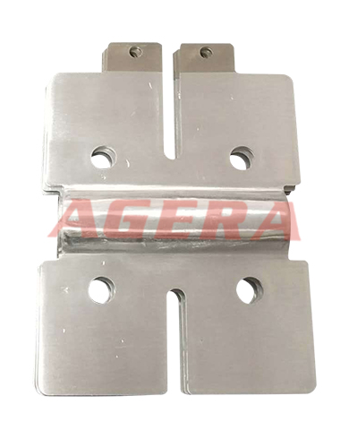 此焊接產(chǎn)品為鋁覆鎳高分子擴(kuò)散焊的產(chǎn)品,采用安嘉鋁箔軟連接高分子擴(kuò)散焊機(jī)焊接,此設(shè)備采用C型整體箱式結(jié)構(gòu),剛性強(qiáng)、散熱好,焊接變形??;上下電極有三維精密微調(diào)裝置,可精準(zhǔn)校平平行度,保證焊接精度和平整度,設(shè)備自帶風(fēng)冷功能,高效節(jié)能,可24小時(shí)連接工作等特點(diǎn)。