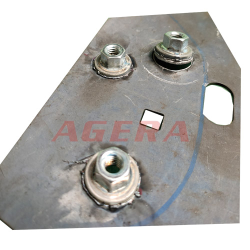 此焊接產(chǎn)品為熱成型鋼法蘭螺母凸焊產(chǎn)品,采用安嘉自動化大功率儲能凸焊機焊接,專用焊接夾具定位,配有焊接螺母輸送機,自動送螺母。焊接效率高,而儲能焊機通過充電變壓器給大電容充電,再給大功率變壓器在很短的內(nèi)釋放出來,輸出電流大,熱量集中,滲透力強,焊接出來成品外觀熱影響區(qū)小,強度高,質(zhì)量穩(wěn)定。