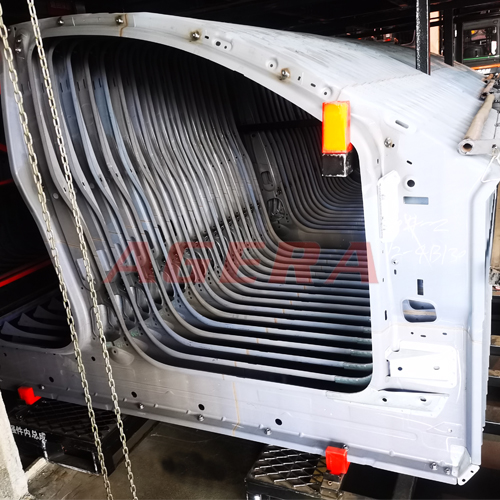 此焊接產(chǎn)品為一體成形門環(huán)點(diǎn)焊產(chǎn)品,采用安嘉自動化雙焊鉗機(jī)器人工作站自動點(diǎn)焊補(bǔ)丁板,配以雙工位轉(zhuǎn)臺,兩把機(jī)器人焊鉗通過仿真按最優(yōu)路線同步點(diǎn)焊,轉(zhuǎn)臺工裝采用傾斜形式,滿足焊接的同時(shí)節(jié)省了機(jī)器人的運(yùn)行空間,補(bǔ)丁板焊接后焊核穩(wěn)定、強(qiáng)度好。