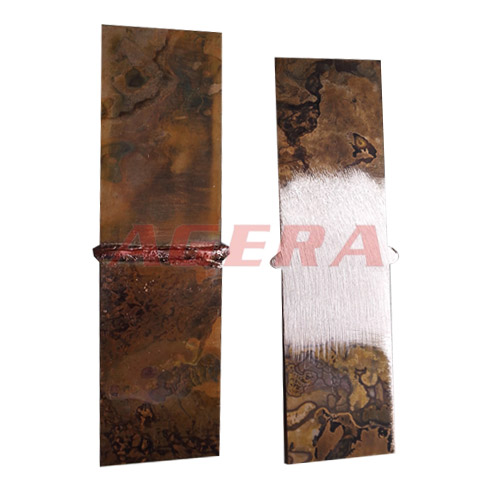 此焊接產(chǎn)品為3*50mm紫銅板對(duì)焊樣品,采用安嘉自動(dòng)化交流逆變電阻對(duì)焊機(jī),上下電極要求平整度高,大壓力夾緊,加以大電流對(duì)焊而成。以下為焊接此產(chǎn)品的焊機(jī)。