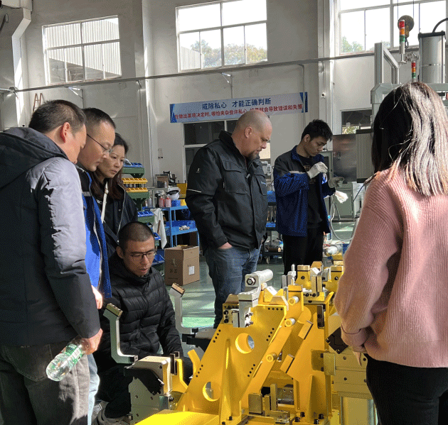 巴西客戶來廠驗收機(jī)器人螺母凸焊工作站